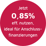 Je nach Zinsbindung und Darlehensbetrag erhalten Sie bei uns eine Finanzierung ab günstigen 1,51% effektiven Jahreszinsen.